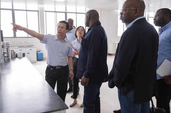 鄧濤先生與 Lengo 先生相識多年, Lengo 先生一直很欣賞鄧總在冶金專業(yè)的才華與專注。此次應邀來公司訪問交流, Lengo 先生饒有興致地參觀了公司辦公室、加工廠及研發(fā)中心,聽取了鄧總關于公司的發(fā)展歷程、旋流電解技術、研發(fā)中心實驗裝置、公司在國內外開展的多個項目的講解。當回顧公司的創(chuàng)立與 LEDYA 集團的淵源時,鄧總和 Lengo 先生更是歡笑起來,現(xiàn)場氣氛熱烈。