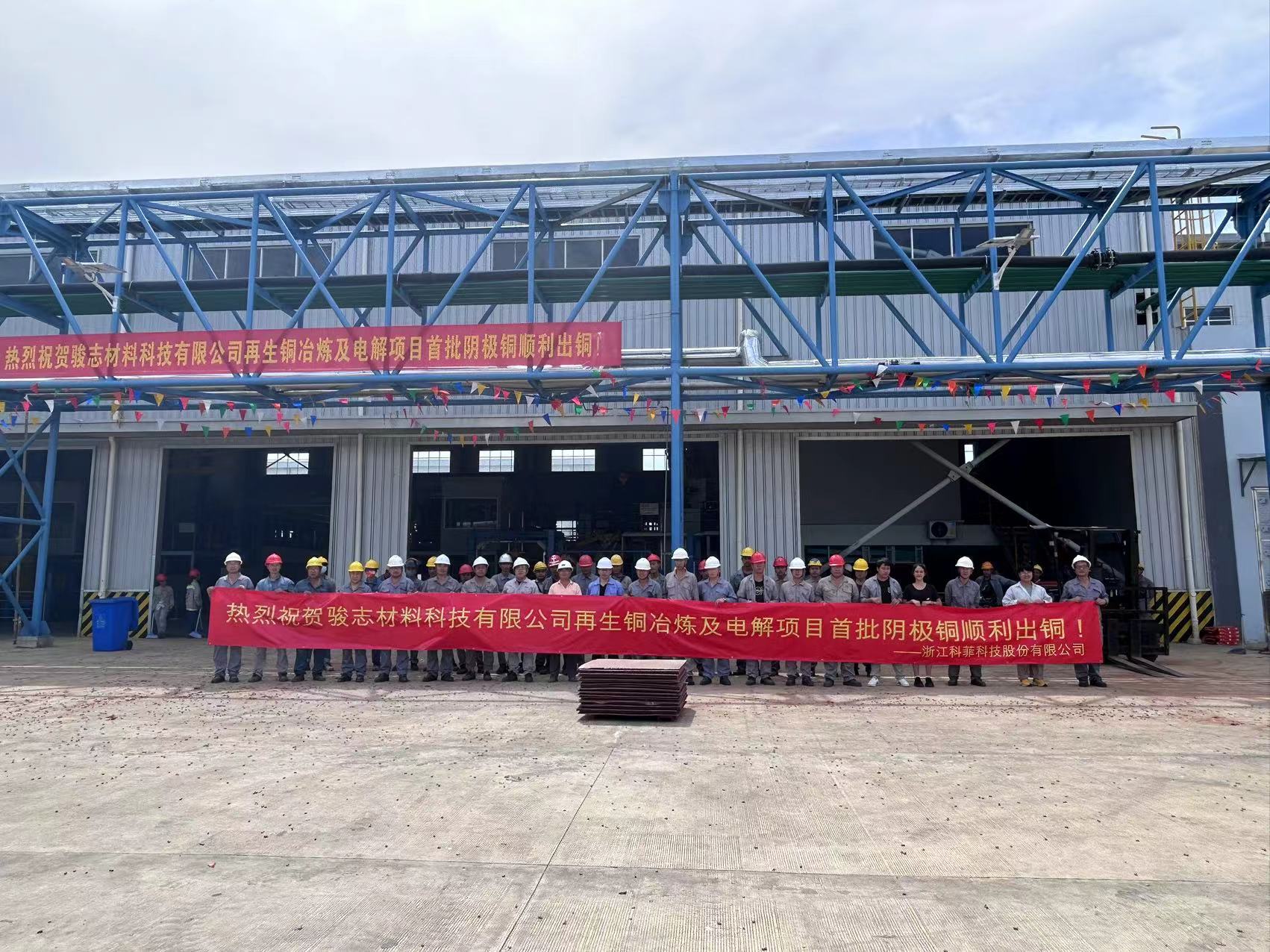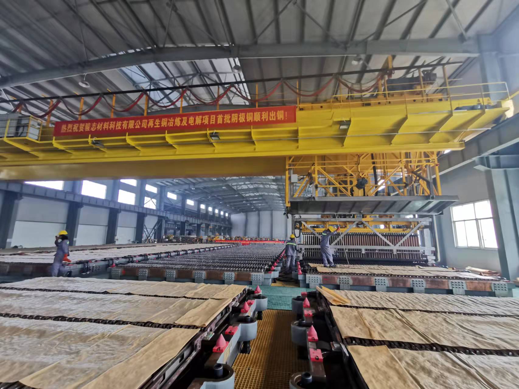 陽極板,于2023年6月26日9:58分銅電解精煉產出首批合格陰極銅產品。標志著駿志公司年產15萬噸陰極銅項目的一期工程6 萬噸陰極銅項目正式完整進入生產運營階段。該項目的順利建設并進入生產運營服務階段標志著科菲公司的EPC+O&M全套項目服務模式進入一個新的階段。